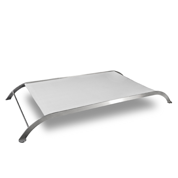 La branda DUDU’, adatta a gli amici di taglia più grande, è in acciaio satinato tagliata a laser e saldata a mano. Rivestita in cavallino o in tela di nylon tirata con cinghie. Un prodotto che mette in luce design, raffinatezza e bravura delle maestranze artigiane tutte fuse in un’unica parola: lusso..