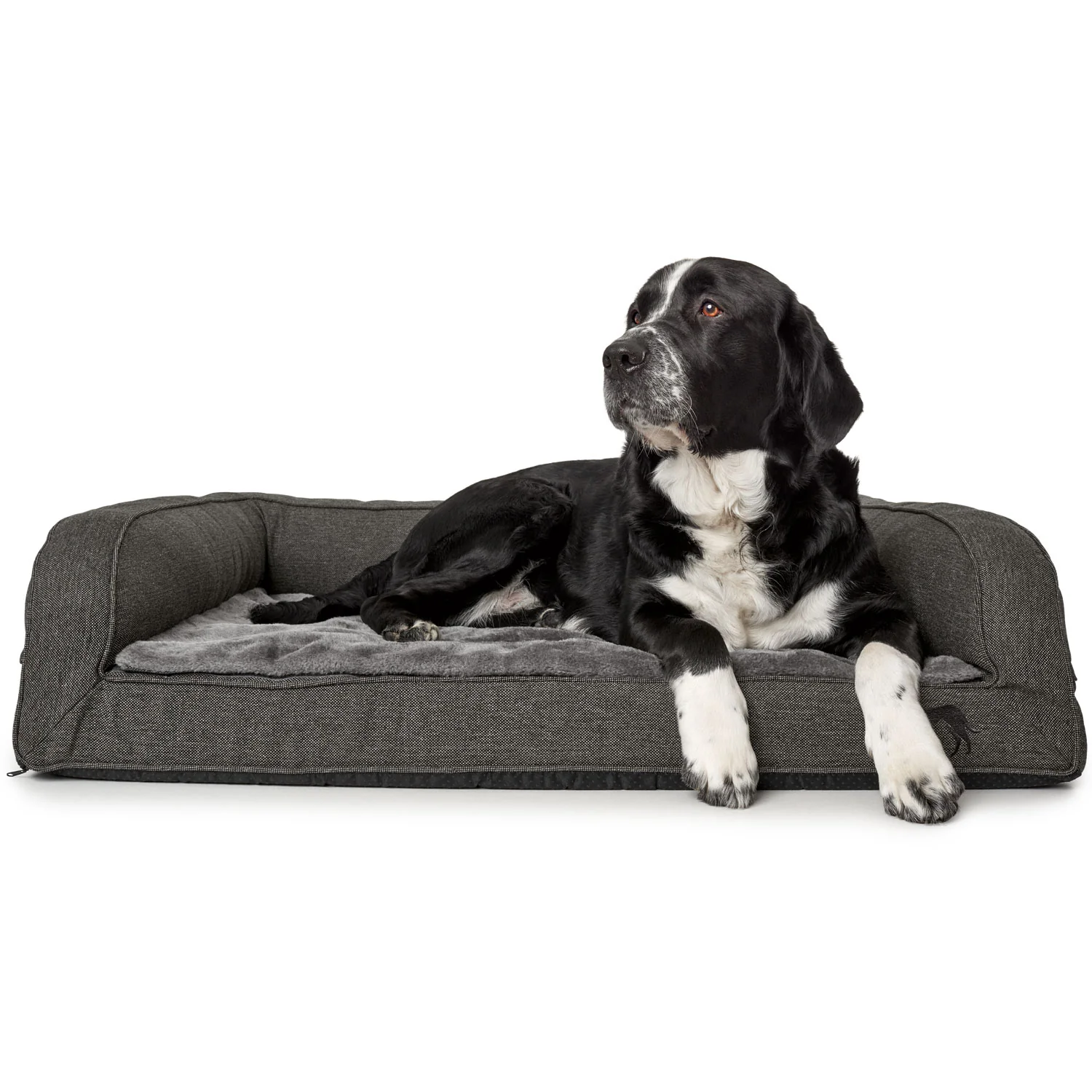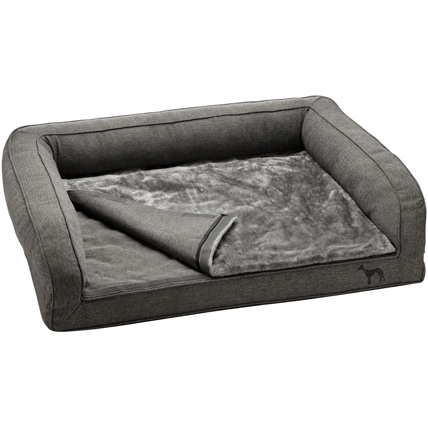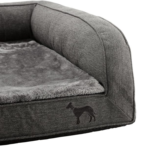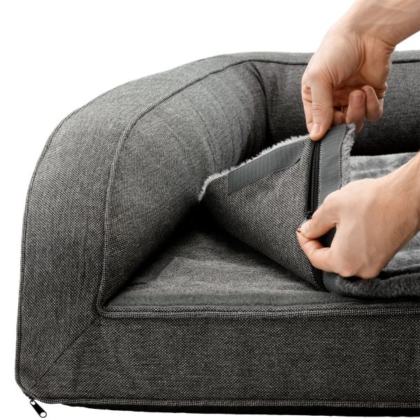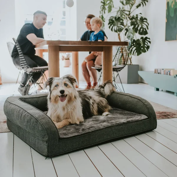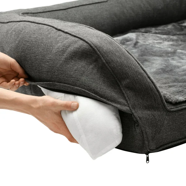 Se hai problemi alla schiena o alle articolazioni, un materasso che allevia la pressione può essere utile non solo per le persone. Il divano ortopedico per cani LIVINGSTON offre ai cani con problemi articolari e alla schiena un posto comodo dove sdraiarsi. Il divano per cani è leggermente sollevato da terra e non ha bordi nella parte anteriore, rendendo più facile “salire”. La superficie sdraiata con memory foam, sostiene le articolazioni e la schiena del cane e bilancia esattamente il suo peso corporeo. In caso di incontinenza o simili, i cuscinetti assorbenti possono essere collocati in una tasca appositamente progettata. Mentre il piacevole tessuto strutturato conferisce al divano un aspetto elegante, la superficie sdraiata segna con calda e coccolose finiture in peluche. Un piccolo logo HUNTER ricamato adorna discretamente la parte anteriore. Grazie alla cerniera, la copertura può essere facilmente rimossa e lavata a 30 °C